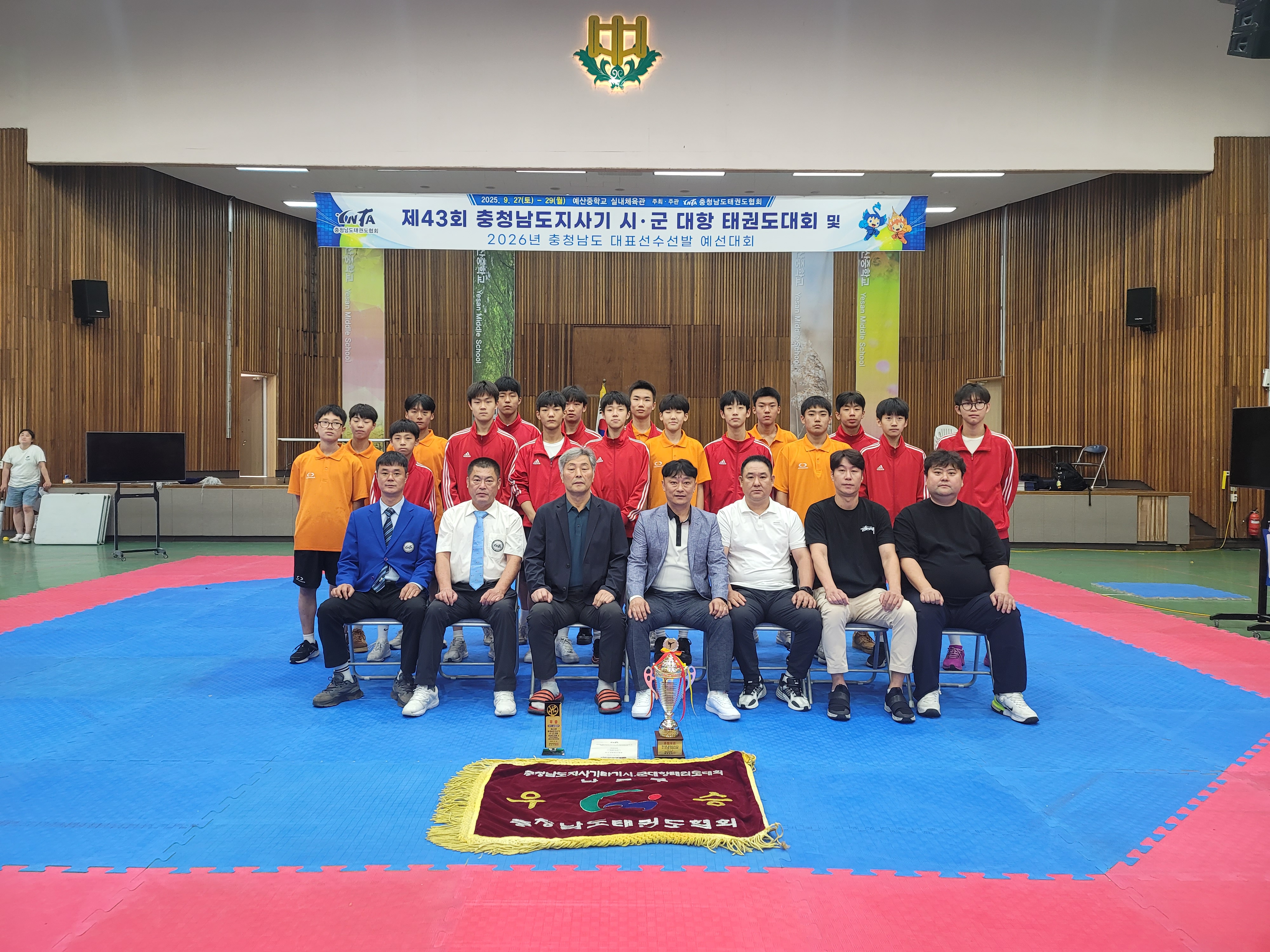안녕하세요. 예산중학교 태권도부 입니다. 저희는 팀은 2025년 전국대회 우승 2회 아시아 유소년 태권도 선수권대회 1위 우수지도자상 3회 충남대회 전경기 우승을 하였습니2025.12.09 20