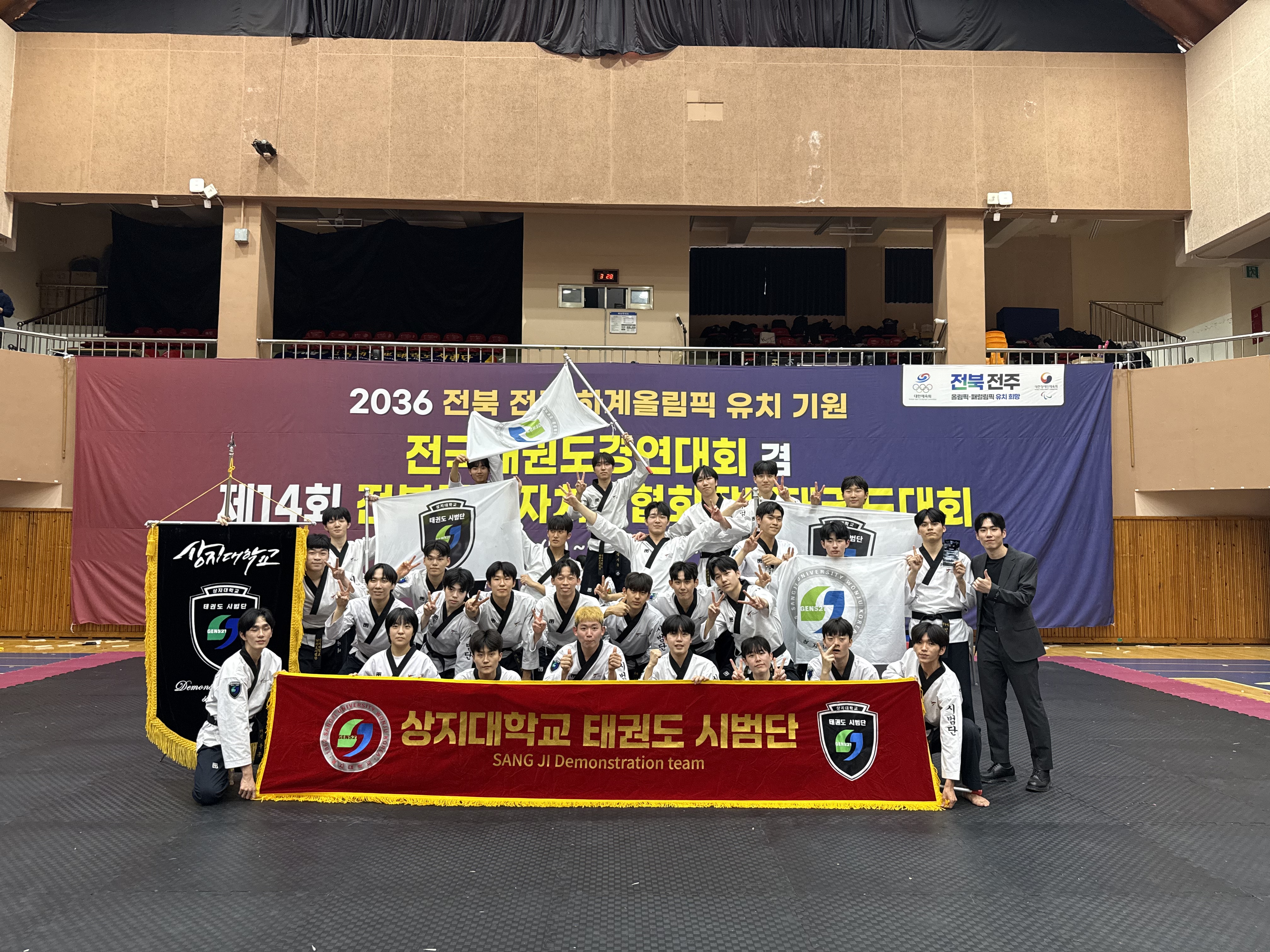 안녕하십니까 상지대학교 태권도 시범단입니다 저희는 강원특별자치도 원주시에 위치한 상지대학교 체육학부 태권도학 전공 태권도 시범공연 동아리이며 대한태권도협회에 정식 승인된 태권도 격2025.12.19 25